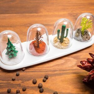 Produktu attēliem un video ir tikai ilustratīva nozīme, tāpēc tajos iekļautā informācija var atšķirties no paša produktaJauki garšvielu kratītāji ar četriem kokiem. Nodrošiniet jautru un labu dizainu savā virtuvē un uz galda. Izvēlieties savas iecienītākās garšvielas un izveidojiet jaunu vidi katram kokam. Funkcijas: – 4 gab garšvielu kratītāju komplekts ar paplāti – katrā kratītājā cits koks – mazi caurumi ir paredzēti sāls, cukura utt. un lielāki kaltētiem augiem – ļoti viegli tīrāmi un uzpildāmi – izgatavoti no pārtikas kvalitātes antibakteriālas plastmasas – metakrils, koks – polipropilēns, kratītāja paliktnis – ABS sveķi) – laba ideja mazai dāvanai – var pārdot tikai komplektā – laba kvalitāte – tikai ar rokām