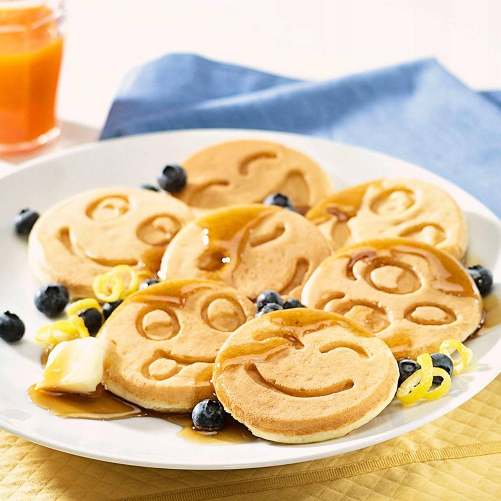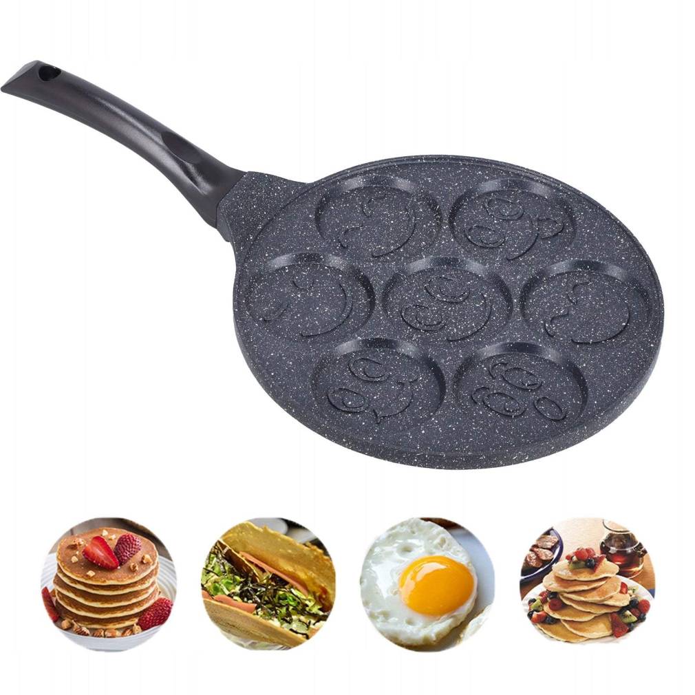 Pateicoties šim produktam, jūs varat izveidot interesantas brokastis, kuru mērķis ir padarīt rītu patīkamāku un priecīgāku. Panna ar septiņām unikālām sejām jautrā veidā dažādos jūsu ikdienu. Smieklīgas emocijzīmes uz pankūkām mudinās bērnus ēst. Īpaši reljefi apļi palīdzēs pagatavot ideālas formas pankūkas un neļaus tām iztecēt pa visu pannu.