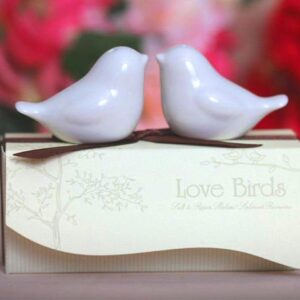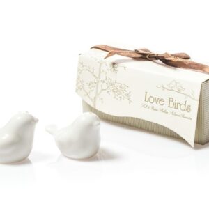 Eleganti, mīlīgi un izsmalcināti garšvielu trauciņi – mīlas putniņi. Sāls un piparu trauciņi elegantā dāvanu iesaiņojums. Komplektā divi trauciņi.