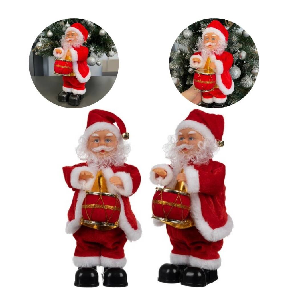 Produktu attēliem un video ir tikai ilustratīva nozīme, tāpēc tajos iekļautā informācija var atšķirties no paša produktaŠajā dekorācijā Ziemassvētku vecītis priecīgi spēlē bungas. Skatieties, kā viņš